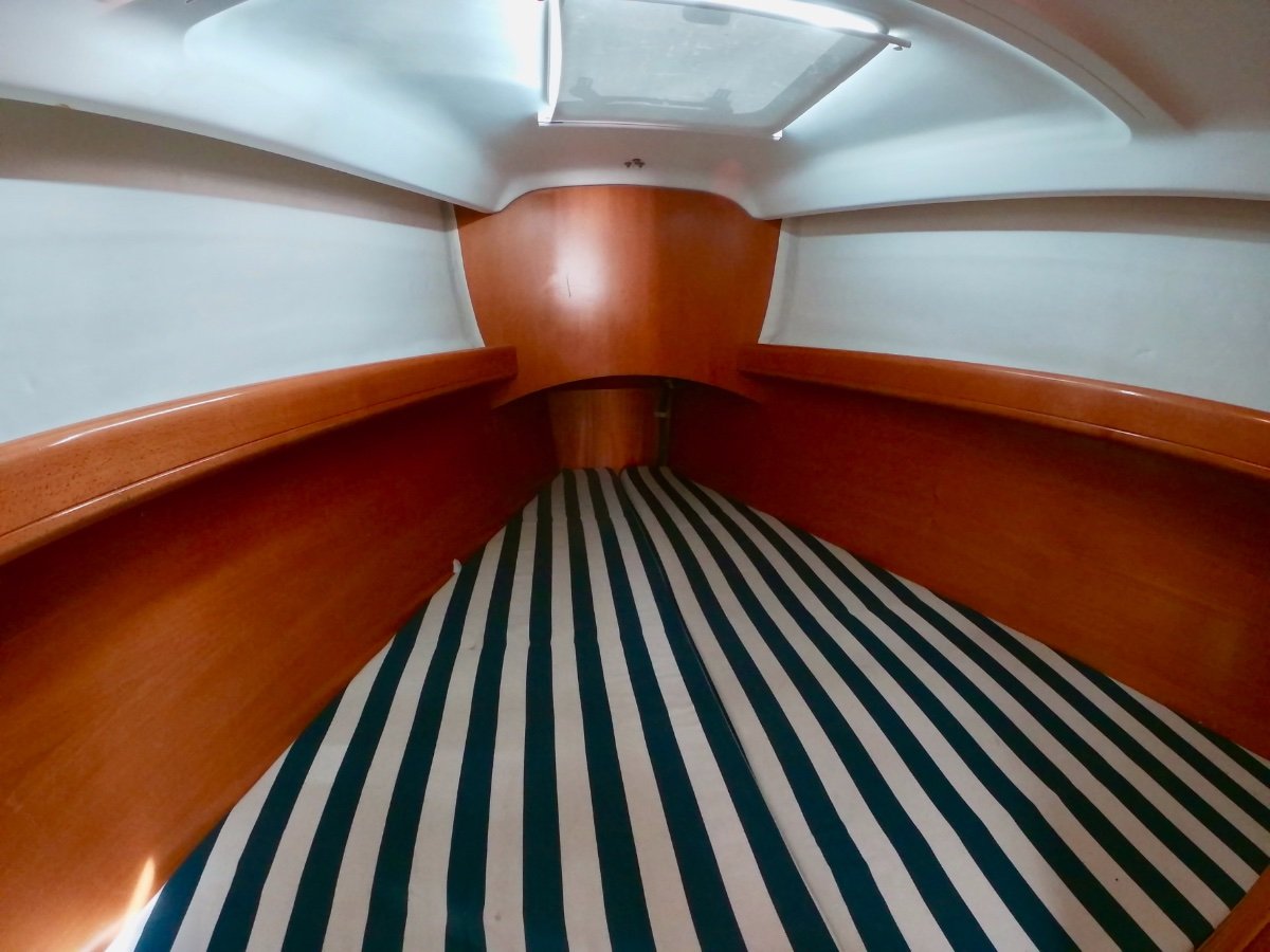The for'ard double berth is large and comfortable with the combined toilet / shower accessed from that cabin as well as from the saloon.