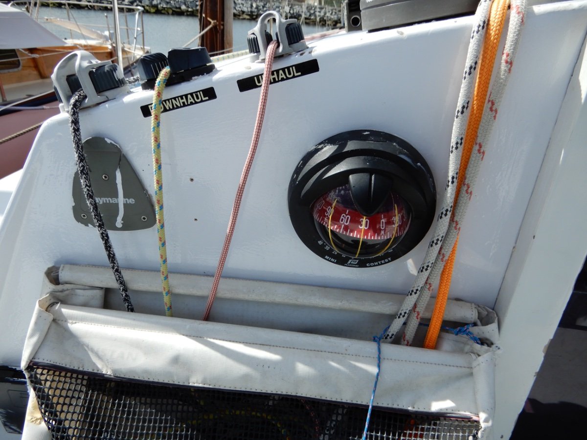 On deck, the vessel is neatly fitted out for ease of handling, and is easily managed either short handed or with the full race crew. The vessel boasts a near new set of sails, as well as complete training and cruising wardrobes. Powered by a well maintained 10HP Volvo Diesel, the vessel cruises comfortably at 5 to 6 knots.